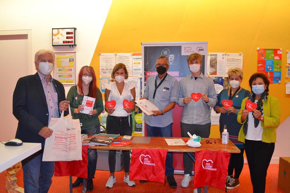 Augsburg. Workshops, Musik, Medien, Kreatives und Chill-Out auf drei Etagen: Die „Lange Nacht der Demokratie“ des Bezirksjugendrings Schwaben in der Augsburger Stadtbücherei bot reichlich Gelegenheit, sich auszutauschen, zuzuhören und konkrete Vorschläge anzubringen. Im Mittelpunkt standen Themen, die viele junge Menschen bewegen: Verschwörungserzählungen, Extremismus, LGBTQI+, soziale Ungleichheit oder Umweltfragen. Zu den mehr als 30 beteiligten Organisationen gehörte auch die AWO Schwaben samt Jugendwerk. Die stellv. Präsidiumsvorsitzende Petra Fischer zeigte, wie man so genannte Sketchnotes malt und durch diese kreative Verbindung von Text und Zeichnung ein Thema eindrucksvoll vor Augen führen kann. Zudem konnten AWO-Standbesucher ihr Wissen bei einer Schnitzeljagd quer durchs Haus testen. „Demokratie auf diese Weise für junge Menschen erfahrbar zu machen und sie zum Mitgestalten anzuregen, ist eine super Sache. Und die AWO hat wirklich viel zu bieten. Unsere Werte Toleranz, Solidarität, Freiheit, Gleichheit und Gerechtigkeit sind populärer denn je“, so das Fazit der AWO Schwaben.