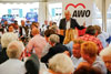Bereits wohnhafte Mieter, Nachbarn und Gäste kamen zusammen, um das Bauobjekt hochleben zu lassen und einen Blick hinein zu werfen.