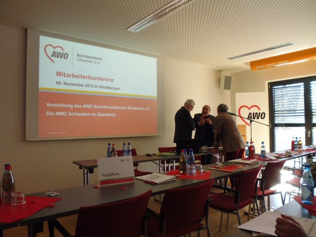 Im Mittelpunkt stand die AWO Schwaben als Verband und Unternehmen. Dabei bewegten die Teilnehmerinnen und Teilnehmer gerade auch grundsätzliche Fragen rund um ihren Arbeitsplatz. AWO-Schwaben Präsidiumsvorsitzender Dr. Heinz Münzenrieder in seinem Vortrag: „Wir freuen uns wirklich sehr, wenn Sie unserer AWO auch als Mitglied beitreten würden. So können Sie am Vereinsleben teilnehmen und werden Mitglied der Eigentümergemeinschaft AWO! Schicken Sie uns Ihre Beitrittserklärung!“