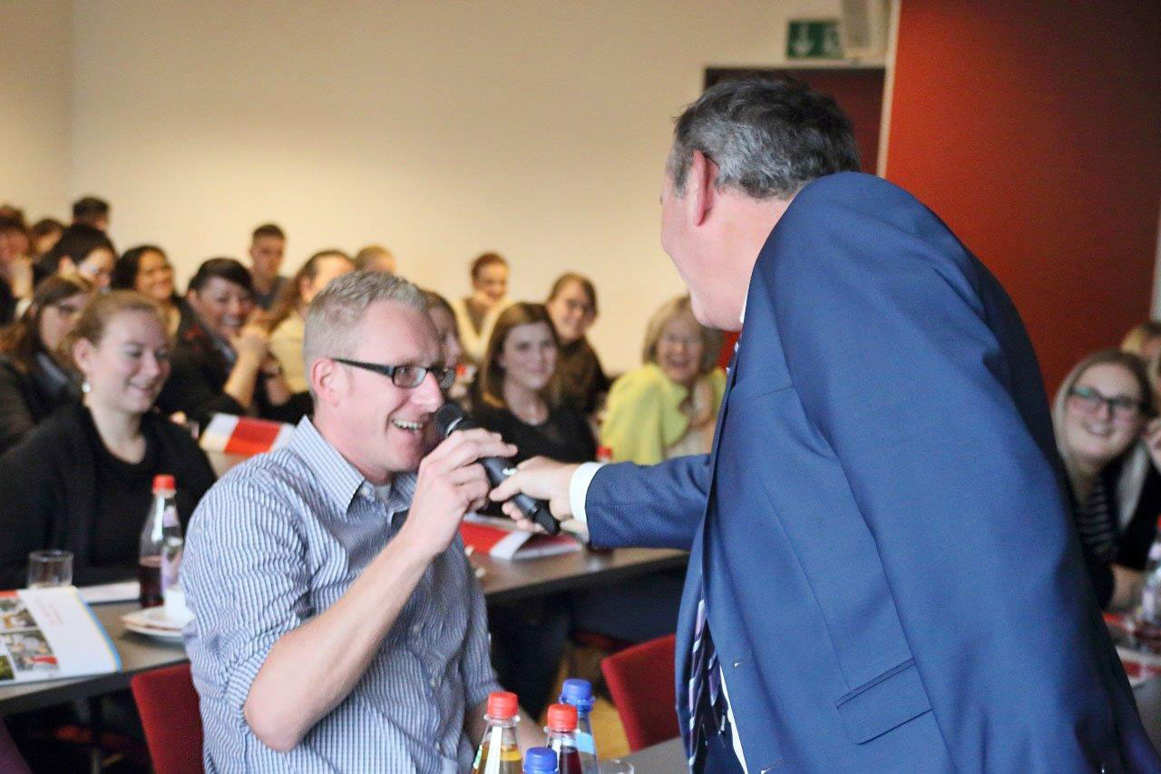 Dabei sein, den Austausch pflegen und danach gestärkt in die Arbeit vor Ort zurückkehren: Die Mitarbeiterkonferenz der AWO Schwaben in Stadtbergen war mit rund 100 neuen Beschäftigten auch diesmal wieder sehr gut besucht. Präsidiumsvorsitzender Dr. Heinz Münzenrieder stellte die AWO Schwaben als Verband vor und erläuterte die Grundzüge der Freien Wohlfahrtspflege in Deutschland. Vorstandsvorsitzender Dieter Egger ging indes auf die unternehmerische Struktur ein und zählte hierbei auch die Vorteile eines Arbeitsplatzes bei der AWO Schwaben auf. In den Pausen gab es bei Kaffee, Gebäck, Brezen und einem Mittagessen Gelegenheit zum persönlichen Kennenlernen. An einem Stand wurde darüber hinaus fair gehandelter Kaffee von AWO International zum Kauf angeboten. Fachlich tiefer in die Materie einsteigen konnte man am Nachmittag in drei kleineren Arbeitsgruppen, geleitet von Dieter Egger, Altenhilfereferent Volker Fritzer, Altenhilfefachberaterin Sabine Polzer, Claudia Zieschank aus dem Referat für Altenhilfe, Vorstand für Kinder- und Jugendhilfe Hans Scheiterbauer-Pulkkinen, Fachberaterin für Kindertageseinrichtungen Silke Scherer und Wolfgang Mayr-Schwarzenbach, Vorstand für Ehrenamt, Organisation und Gesundheit. „Eine tolle und sehr informative Veranstaltung“, waren sich die Besucher einig.