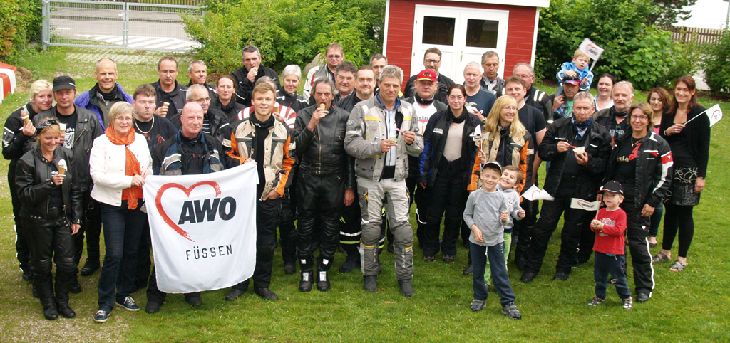 45 Freundinnen und Freunde auf 40 Maschinen folgten der Einladung der AWO Schwaben und nahmen an der diesjährigen AWO-Bayern Motorradtour teil. Ausgangspunkt für die 230 Kilometer lange Strecke vom Westallgäu über den Bregenzer Wald, Sonthofen, Füssen und Immenstadt war die AWO-Familienferienstätte Scheffau (www.bergsicht-scheffau.de). Die inzwischen zur Tradition gewordene jährliche Tour dient dem Austausch von ehren- und hauptamtlich in der Wohlfahrtspflege Beschäftigten sowie dem Kennenlernen und der Präsentation der Arbeit der AWO in den Regionen Bayerns.