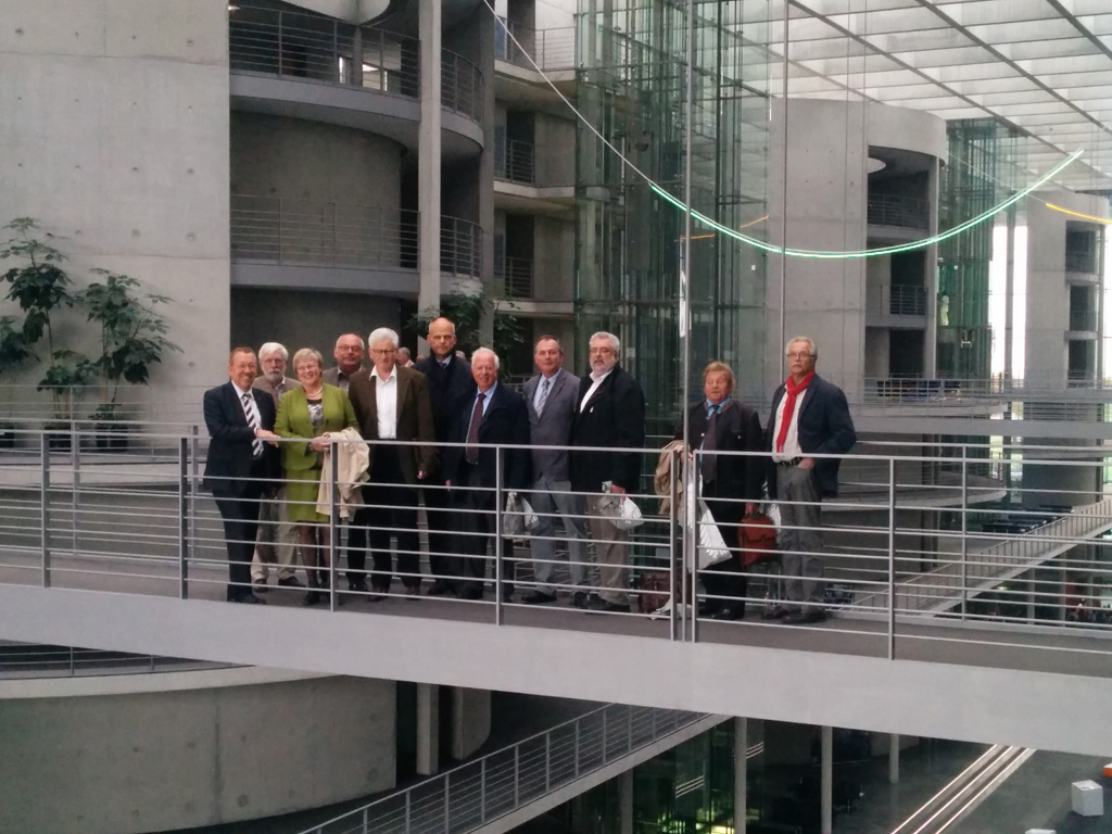 Auf Einladung des Sprechers der Verbandsrevisoren bei der AWO Schwaben und frisch gebackenem Illertisser Bundestagsabgeordneten Dr. Karl-Heinz Brunner besuchte das AWO-Schwaben-Präsidium jetzt Berlin. Neben einem Gespräch zusammen mit dem Team im Abgeordnetenbüro über die Arbeit im Hohen Haus und gemeinsame soziale Themen stand der Besuch einer Plenarsitzung auf dem Programm. An der Stele für die aus der AWO Verfolgten und Ermordeten in der KZ-Gedenkstätte Oranienburg-Sachsenhausen legte das Präsidium zudem einen Blumengruß nieder. Auch der Gründer der Augsburger und schwäbischen AWO, Clemens Högg, wurde hier über Jahre gequält, bevor der dann im KZ Bergen-Belsen ermordet wurde.