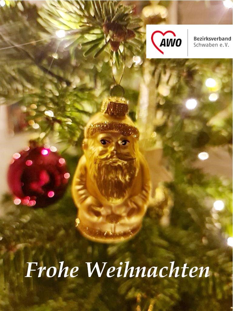 Fast ist das alte Jahr vorbei. Zusammen mit unseren Ehren- und Hauptamtlichen, unseren Geschäftspartner*innen sowie unseren Freund*innen und Unterstützer*innen blicken wir dankbar auf alles zurück, was wir gemeinsam erreicht haben. Wir bedanken uns zudem bei den vielen Menschen, die sich hilfesuchend an uns gewandt haben, und sind gerne für sie da. Wir wünschen allen ein angenehmes Weihnachtsfest und erholsame Feiertage, auf dass wir schwungvoll in das Jahr 2024 starten. Ihre AWO Schwaben