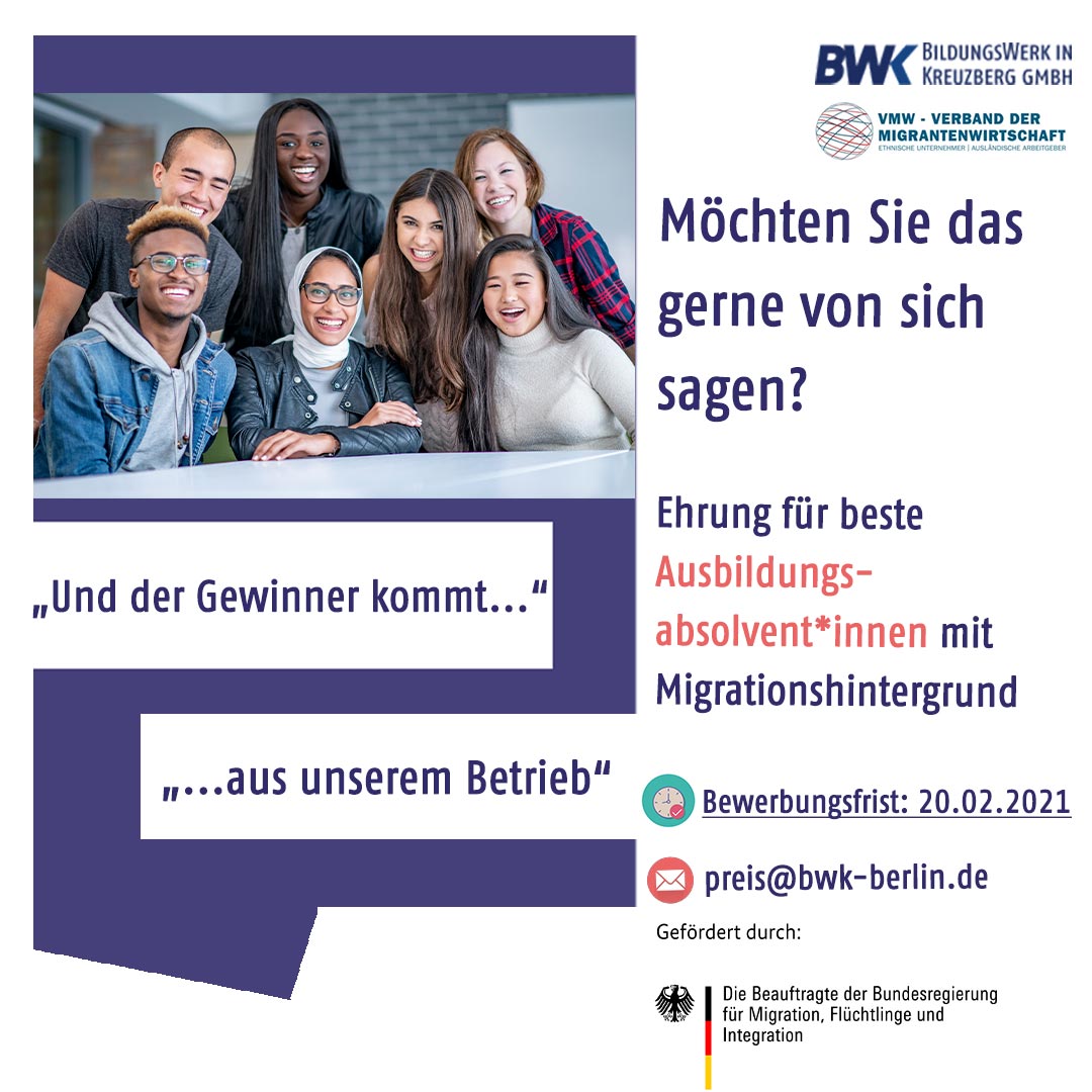 Das soll sich ändern! Um ein Zeichen dagegen zu setzen, sollen die herausragenden Leistungen von Absolventen*innen einer dualen Ausbildung mit einem Migrationshintergrund besonders gewürdigt werden“, so die Initiatoren.